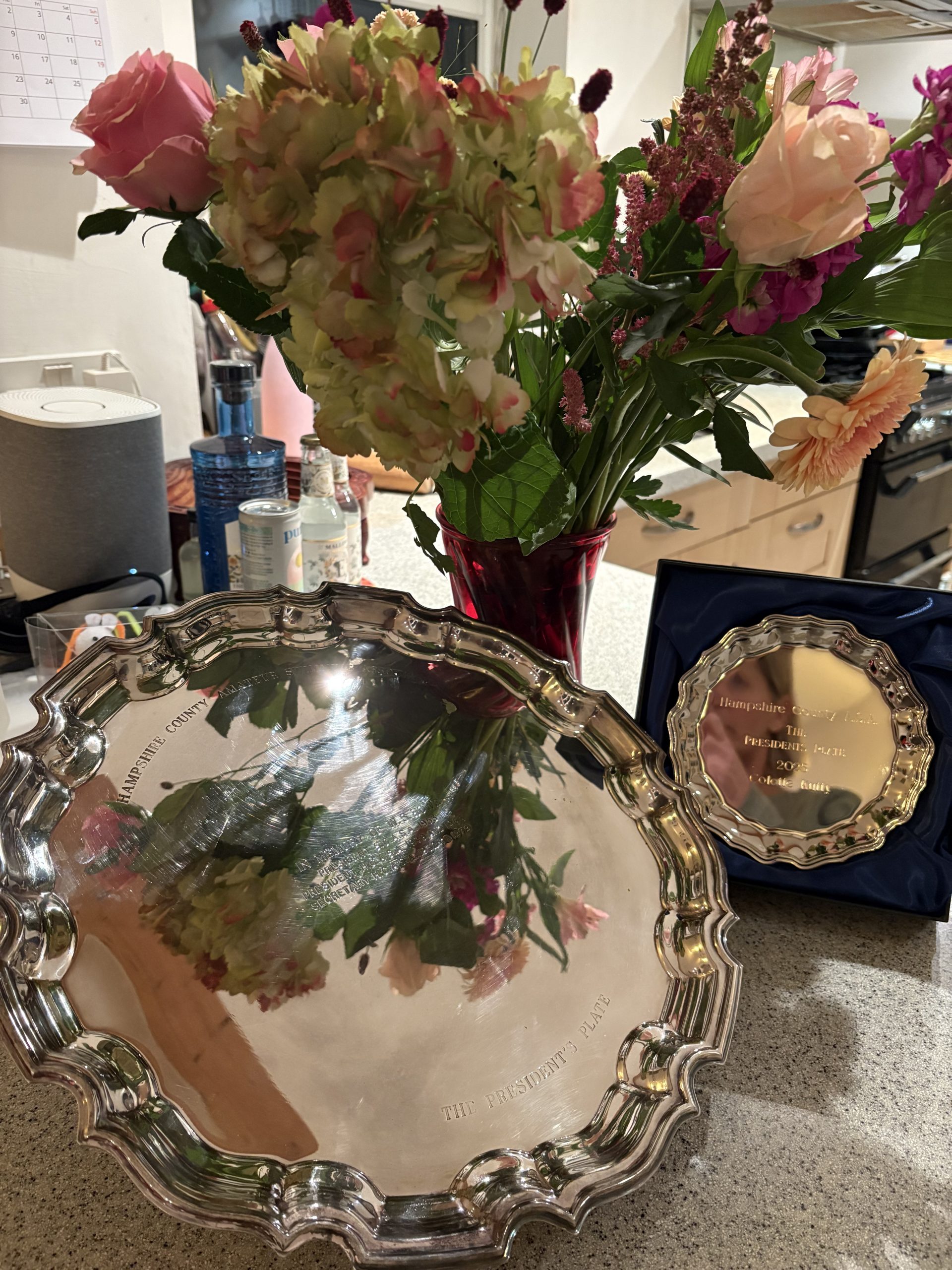 At the same meeting, the retiring President presented the President’s Plate to Colette Kutty of Southampton Diving Academy for her service to the county. She has been the County Diving Manager for many years and is now retiring. The Chairman Graham Cawte thanked her on behalf of the county and presented a bouquet.